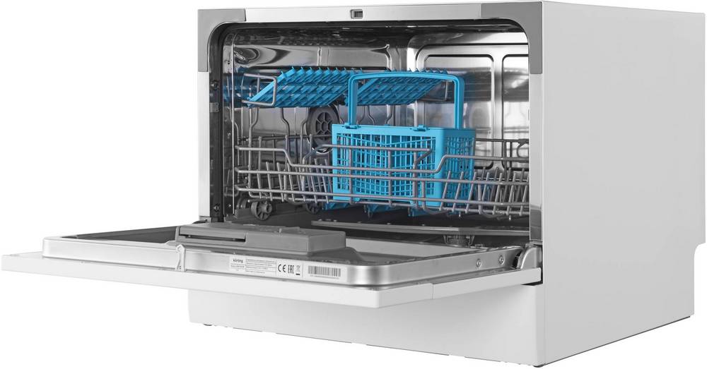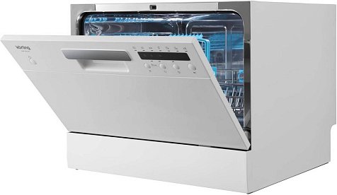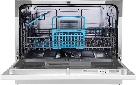 Устройство имеет семь программ и вместимость 6 комплектов посуды. Функция отложенного старта от 1 до 24 часов позволит включить машину в нужное время. Самоочистка автоматически установит необходимые параметры для очистки камеры от жировых загрязнений и известнякового налета. Система защиты от протечек обеспечивает автоматический контроль количества воды и в случае возникновения протечек блокирует подачу воды.