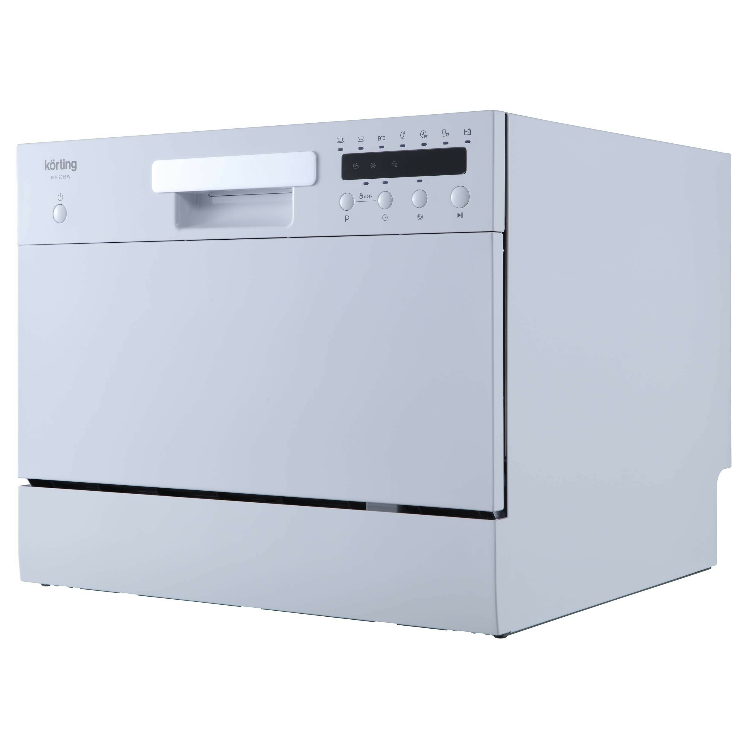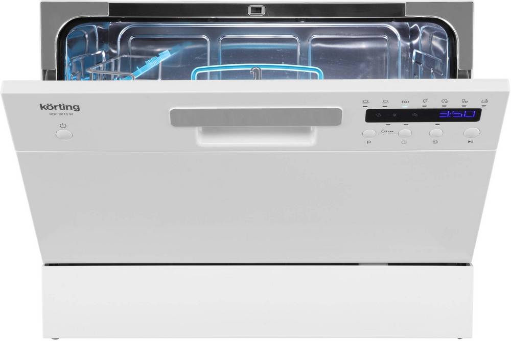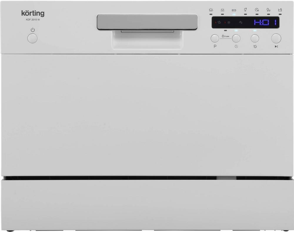 Korting KDF 2015 W — современная компактная отдельностоящая модель, выполненная в белом цвете. Небольшие габариты посудомоечной машины позволяют разместить её в любой части кухни, где есть коммуникации и немного свободного места. Наличие дисплея и электронное управление позволят без труда настроить необходимый вам режим работы.